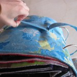 For the ceiling, I purchased a set of green paper lanterns and 2 sets of small, white paintable lanterns. I painted them a variety of colors using craft paints I already owned. I hung our old icicle lights on the kitchen ceiling and then added the lanterns. I had envisioned the lanterns as well as lots of paper cranes. Using three sizes of origami paper in beautiful traditional patterns, I folded about 250 – 300 cranes over the month of January.